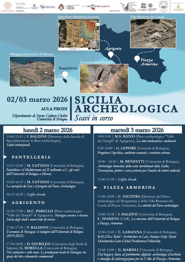 2/3 marzo 2026, Aula Prodi, ore 15:00. Due giornate di presentazione degli scavi del DiSCi attualmente in corso in Sicilia.