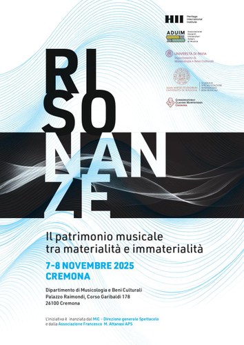 Il futuro del patrimonio musicale, la sua tutela e la sua valorizzazione saranno al centro del convegno internazionale "Risonanze. Il patrimonio musicale tra materialità e immaterialità", che si terrà a Cremona, capitale mondiale della liuteria, nelle giornate del 7 e 8 novembre 2025 presso il Dipartimento di Musicologia e Beni Culturali dell’Università di Pavia.