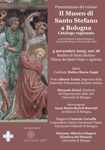 L'incontro di presentazione del volume "Il Museo di Santo Stefano a Bologna. Catalogo ragionato” (Silvana Editoriale), curato da Giacomo Alberto Calogero e Gianluca Del Monaco, si terrà il 4 novembre 2025 alle 18 presso la Basilica di Santo Stefano a Bologna e vedrà la partecipazione del Cardinale Matteo Maria Zuppi, arcivescovo di Bologna, di Frate Alberto Tosini, Superiore della Fraternità Francescana di Santo Stefano, del nostro Direttore Riccardo Brizzi, insieme ai curatori del volume, al Maggiore Carmelo Carraffa del Nucleo Carabinieri Tutela Patrimonio Culturale e di Anna Maria Bertoli Barsotti dell’ufficio beni culturali dell’Arcidiocesi di Bologna. Il volume costituisce il primo catalogo scientifico e ragionato del piccolo, ma importante, Museo di Santo Stefano, si è giovato del contributo di molte studiose e studiosi e tiene conto di tutti gli oggetti (dipinti, sculture, suppellettili sacre) che sono confluiti nel Museo della basilica stefaniana.