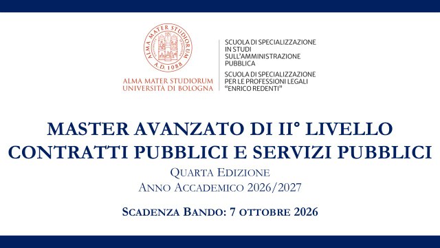 E' stato pubblicato il bando per l'ammissione al Master di II livello in "Contratti pubblici e servizi pubblici" A.A. 2026/2027.