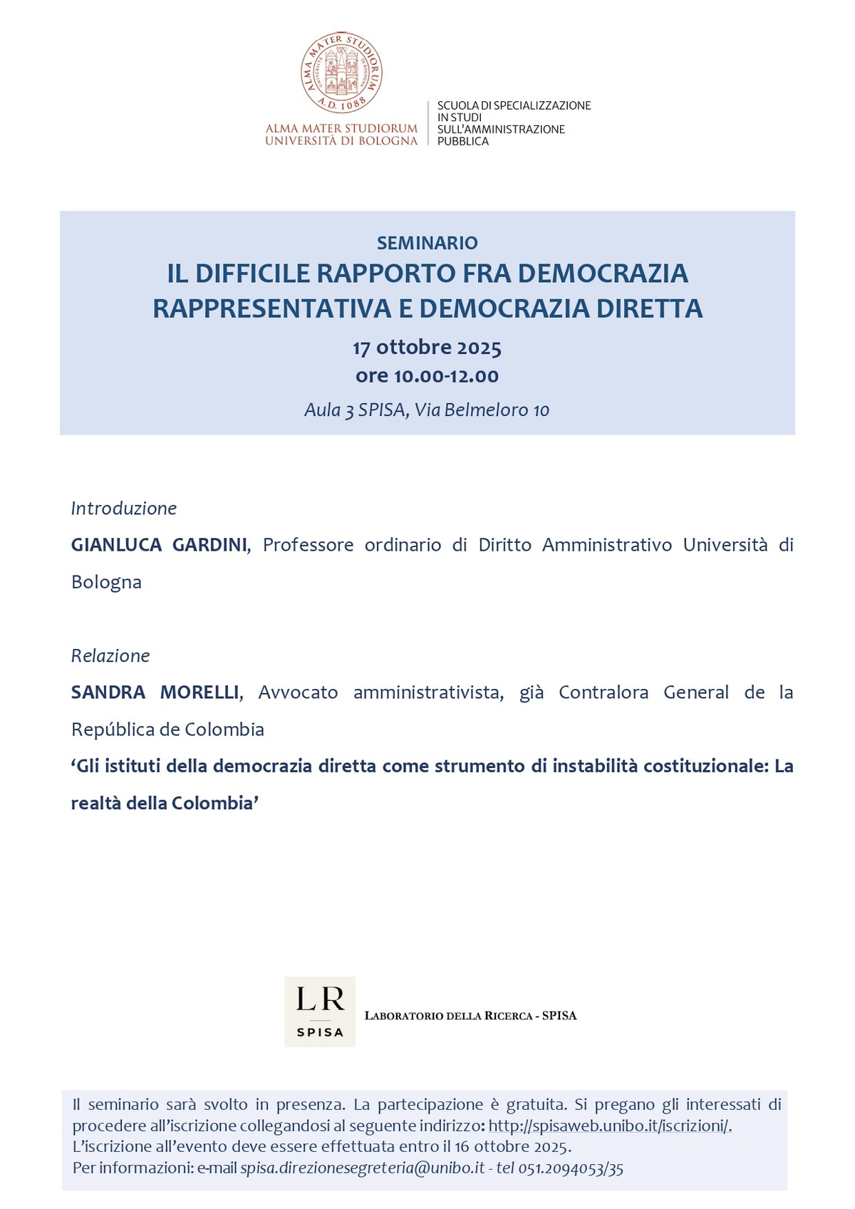 • Luogo: Aula 3, SPISA - via Belmeloro, 10 – Bologna